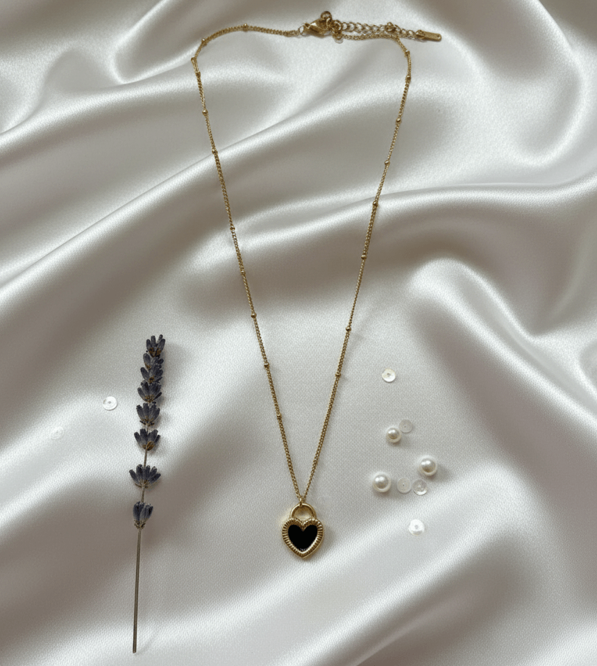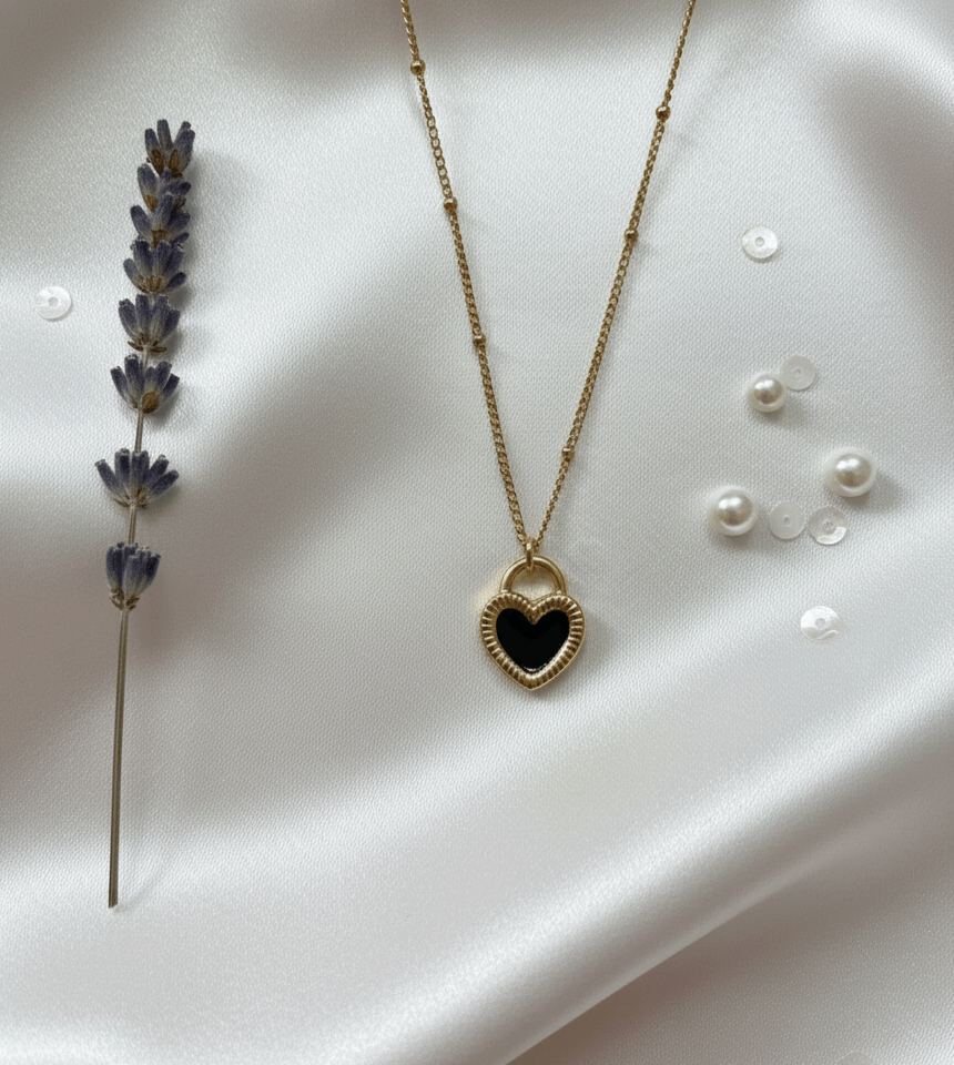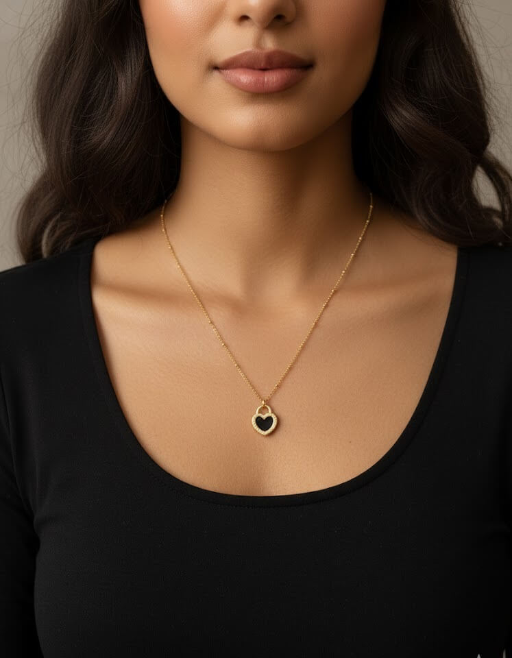 Add a touch of elegance to your everyday look with this beautiful artificial heart pendant necklace. Featuring a dainty gold-toned chain with delicate bead detailing and a charming black heart-shaped pendant, this piece exudes sophistication and grace. Crafted with an advanced anti-tarnish coating, it ensures long-lasting shine and durability, keeping it looking new even after multiple wears. Perfect for both casual and festive occasions, this pendant pairs effortlessly with any outfit.